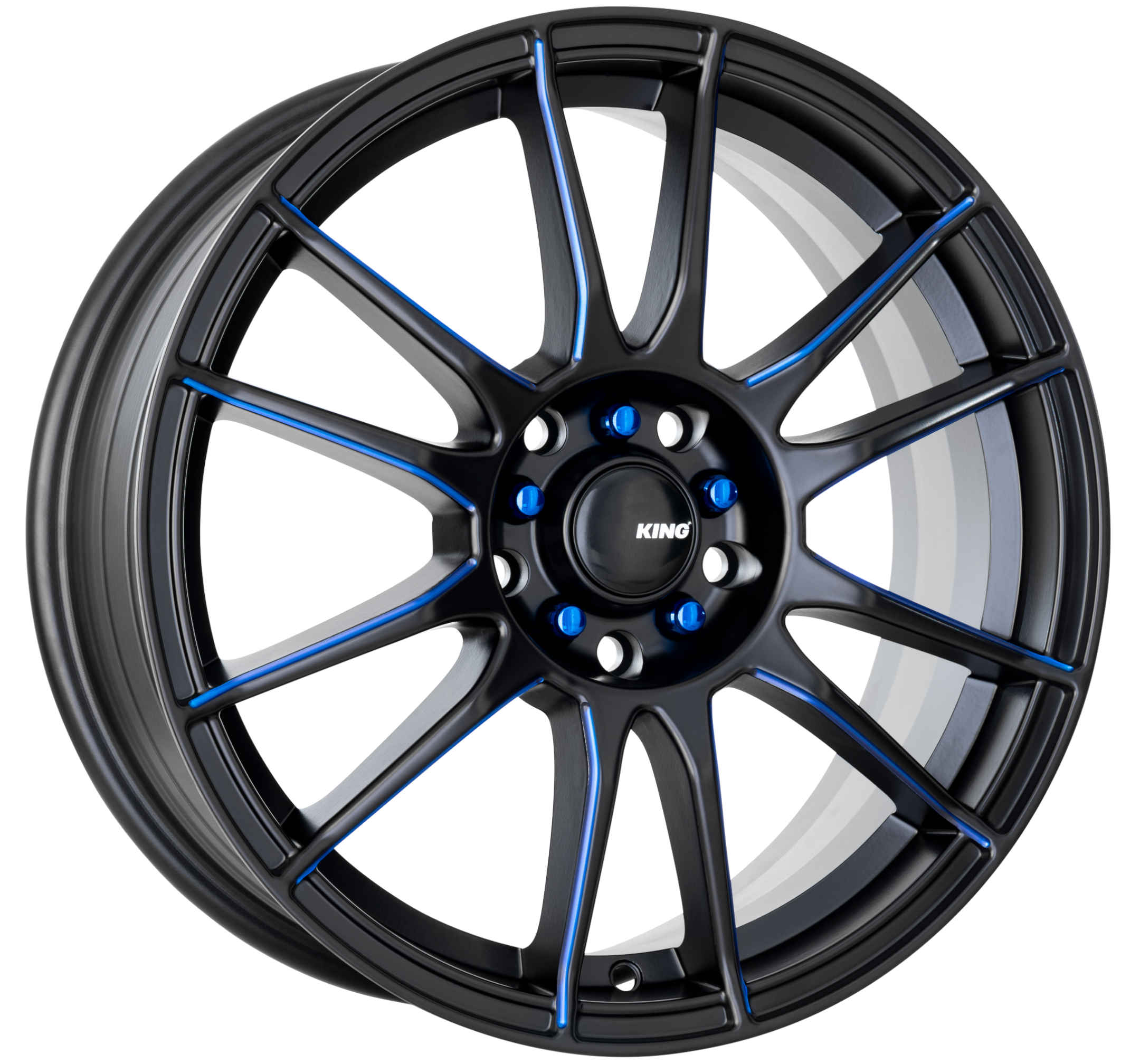 King 17×7 CIRCUIT 5×100 & 5×114.3 BLUE MILLED SATIN BLACK +40